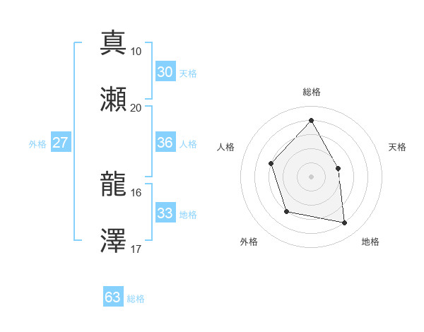 真瀬 龍澤さんを姓名の画数から五運を鑑定