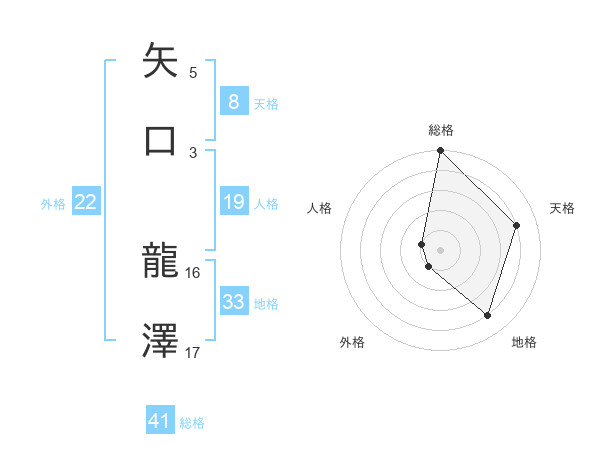 矢口 龍澤さんの総格は41画の5点!
