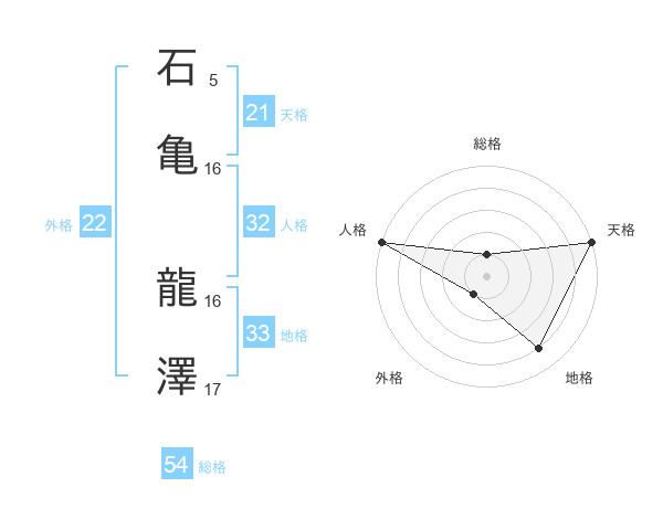 石亀 龍澤さんの総格は54画の1点!