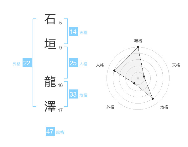 石垣 龍澤さんの総格は47画の5点!