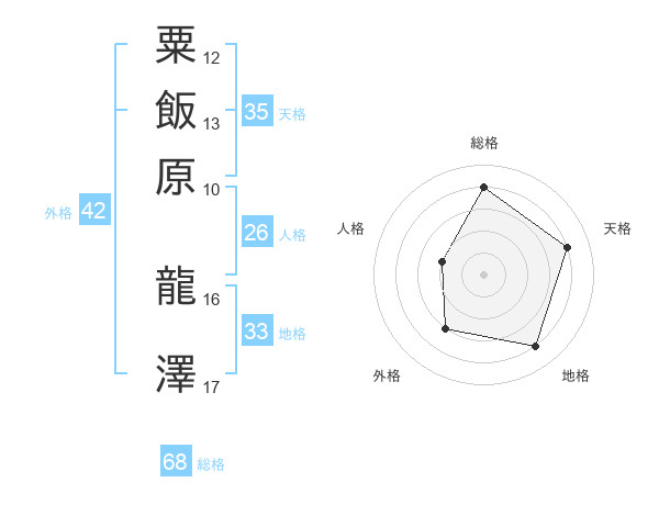 粟飯原 龍澤さんの総格は68画の4点!