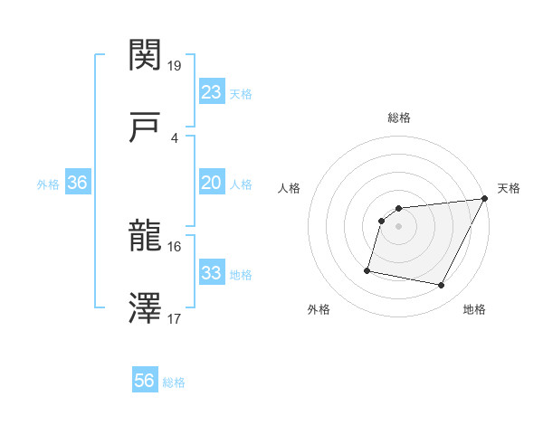 関戸 龍澤さんを姓名の画数から五運を鑑定