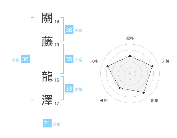 關藤 龍澤さんの総格は71画の3点!