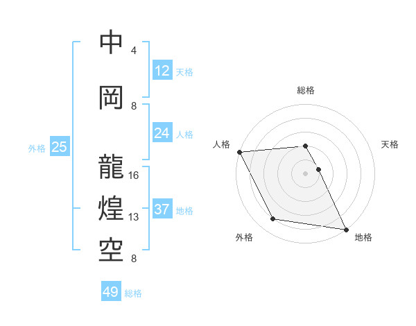 中岡 龍煌空さんを姓名の画数から五運を鑑定