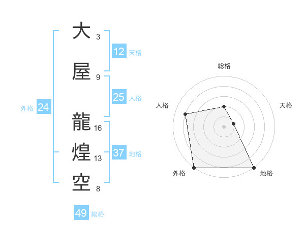 大屋 龍煌空さんを姓名の画数から五運を鑑定
