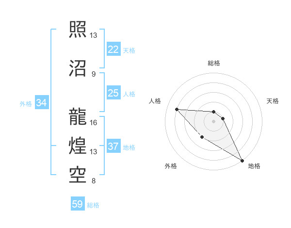 照沼 龍煌空さんを姓名の画数から五運を鑑定