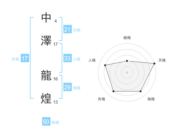 中澤 龍煌さんの総格は50画の2点!