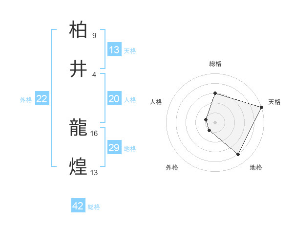 柏井 龍煌さんの総格は42画の3点!