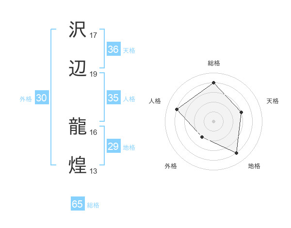 沢辺 龍煌さんの総格は65画の4点!