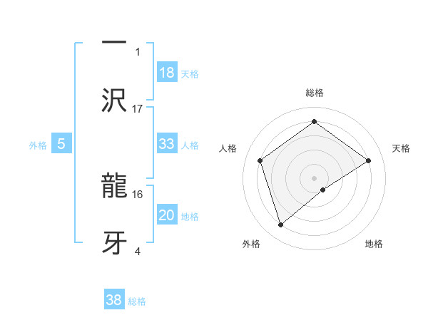 一沢 龍牙さんの総格は38画の4点!