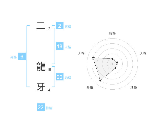 二 龍牙さんの総格は22画の1点!