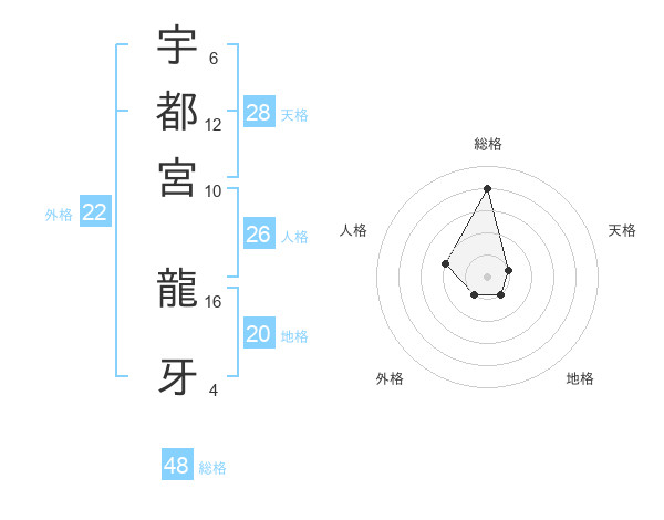 宇都宮 龍牙さんの総格は48画の4点