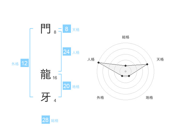 門 龍牙さんの総格は28画の1点!
