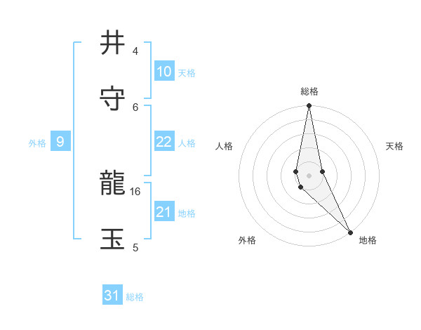 井守 龍玉さんを姓名の画数から五運を鑑定