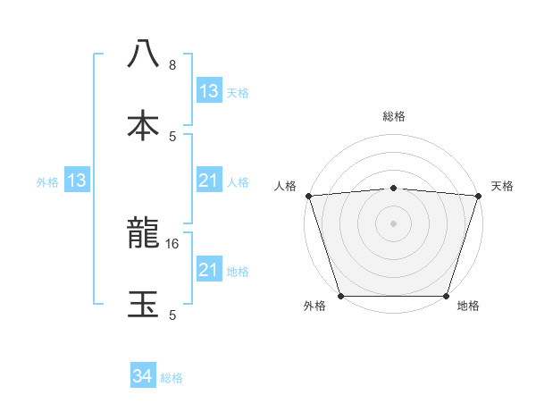 八本 龍玉さんを姓名の画数から五運を鑑定