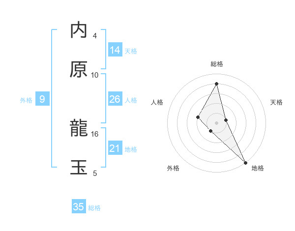 内原 龍玉さんを姓名の画数から五運を鑑定