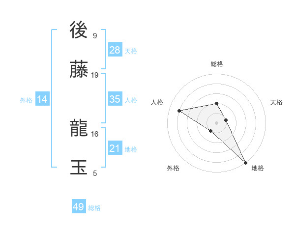 後藤 龍玉さんを姓名の画数から五運を鑑定