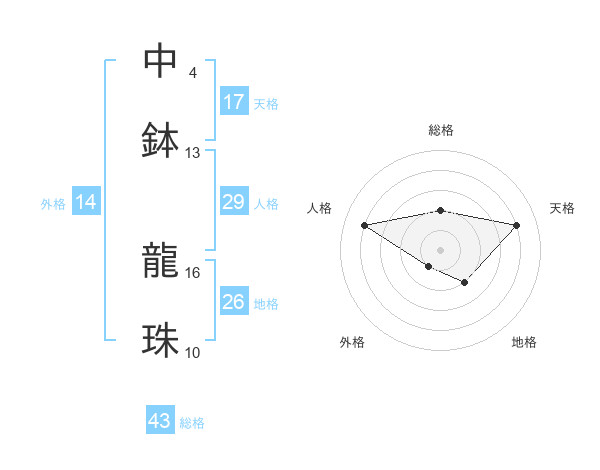 中鉢 龍珠さんの天格は17画の4点!