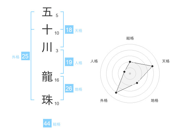五十川 龍珠さんを姓名の画数から五運を鑑定