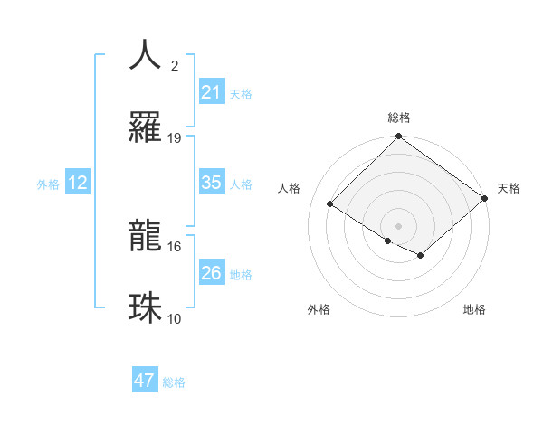 人羅 龍珠さんの総格は47画の5点!