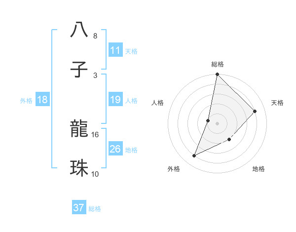 八子 龍珠さんを姓名の画数から五運を鑑定