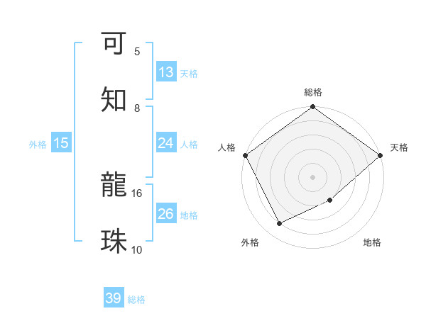 可知 龍珠さんを姓名の画数から五運を鑑定