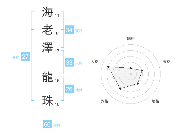 海老澤 龍珠さんを姓名の画数から五運を鑑定