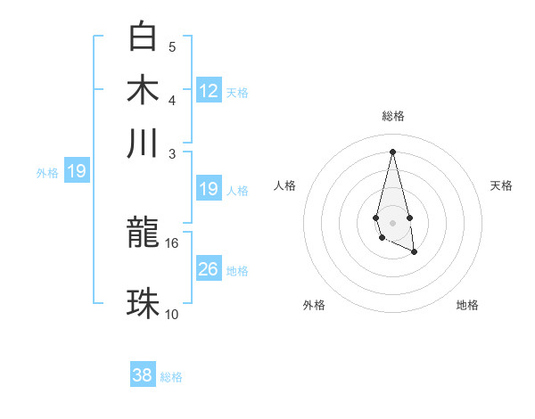 白木川 龍珠さんの総格は38画の4点!