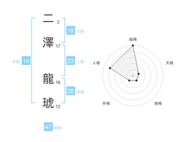 二澤 龍琥さんを姓名の画数から五運を鑑定