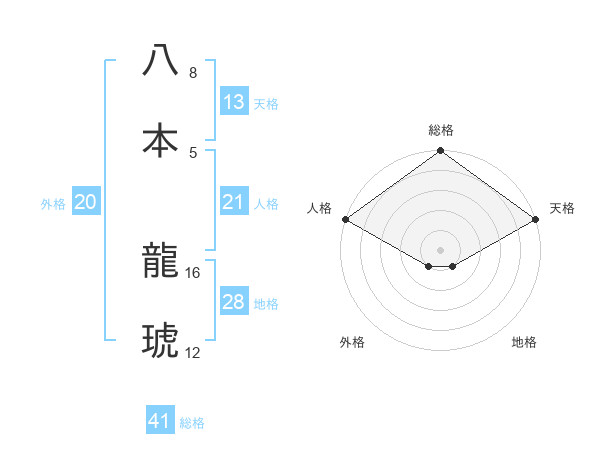 八本 龍琥さんを姓名の画数から五運を鑑定