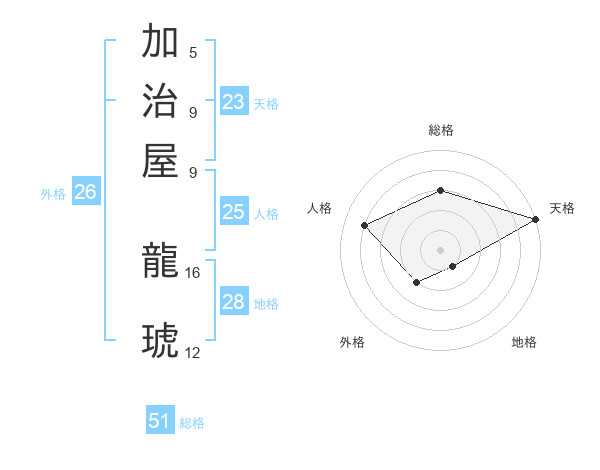 加治屋 龍琥さんの総格は51画の3点!