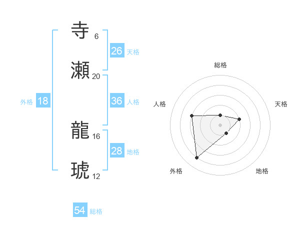 寺瀬 龍琥さんの総格は54画の1点!