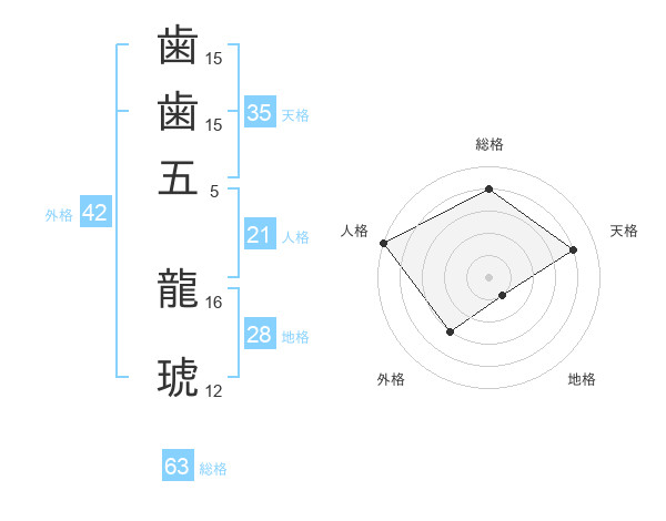 歯歯五 龍琥さんの総格は63画の4点!