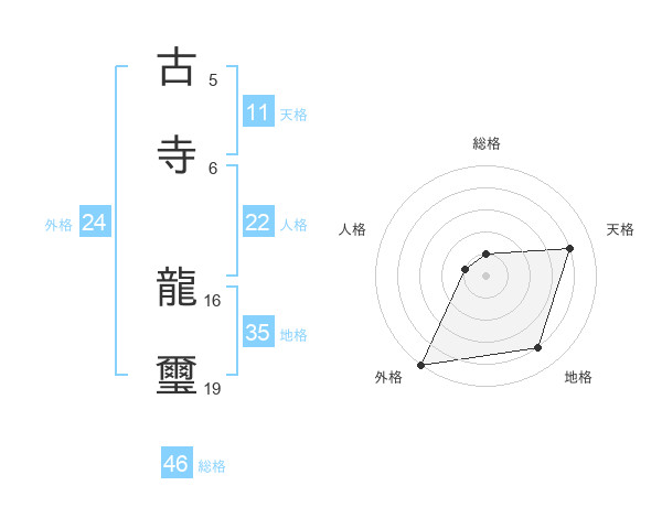 古寺 龍璽さんの総格は46画の1点!