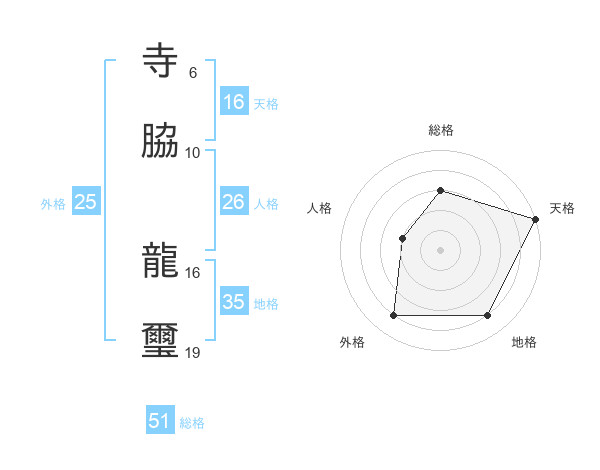 寺脇 龍璽さんを姓名の画数から五運を鑑定