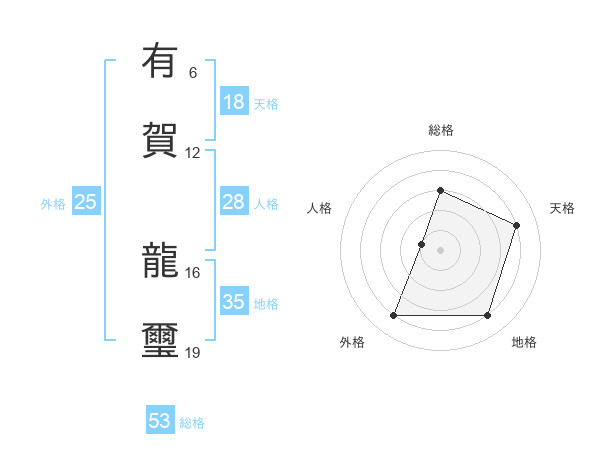 有賀 龍璽さんを姓名の画数から五運を鑑定