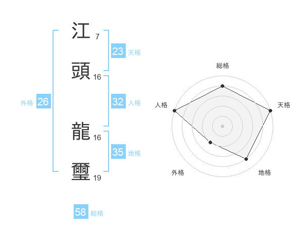 江頭 龍璽さんを姓名の画数から五運を鑑定