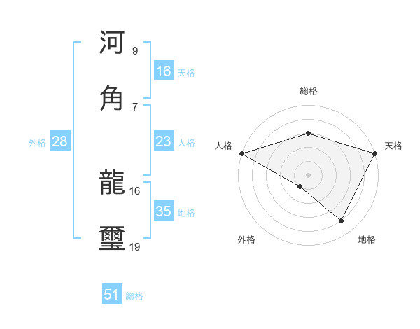 河角 龍璽さんの総格は51画の3点!