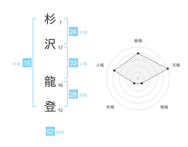 杉沢 龍登さんを姓名の画数から五運を鑑定