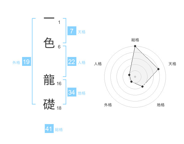 一色 龍礎さんの総格は41画の5点!