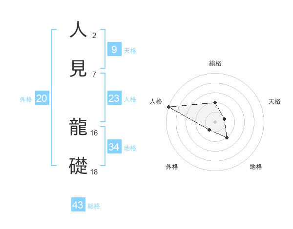 人見 龍礎さんを姓名の画数から五運を鑑定