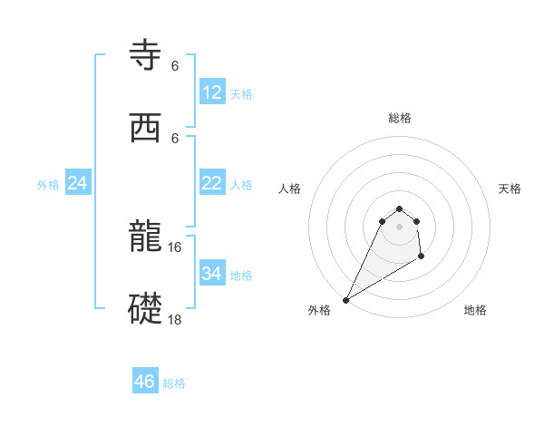 寺西 龍礎さんの総格は46画の1点!