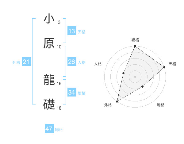小原 龍礎さんを姓名の画数から五運を鑑定