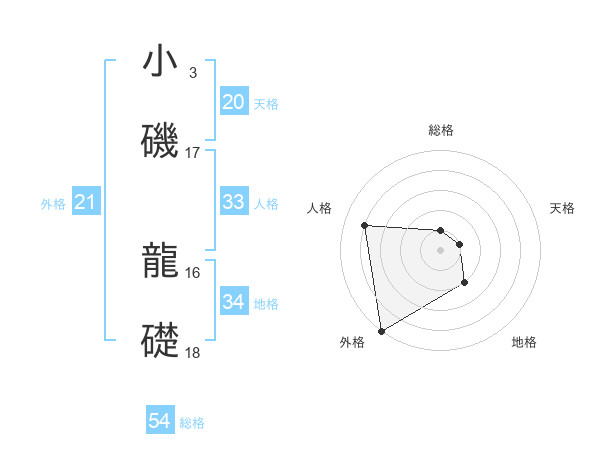 小磯 龍礎さんを姓名の画数から五運を鑑定