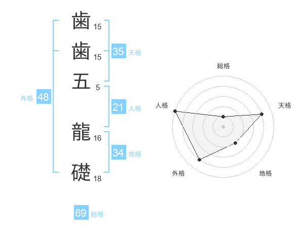 歯歯五 龍礎さんを姓名の画数から五運を鑑定