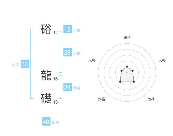 硲 龍礎さんの総格は46画の1点!