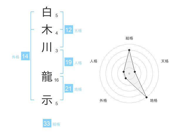 白木川 龍示さんの総格は33画の4点!