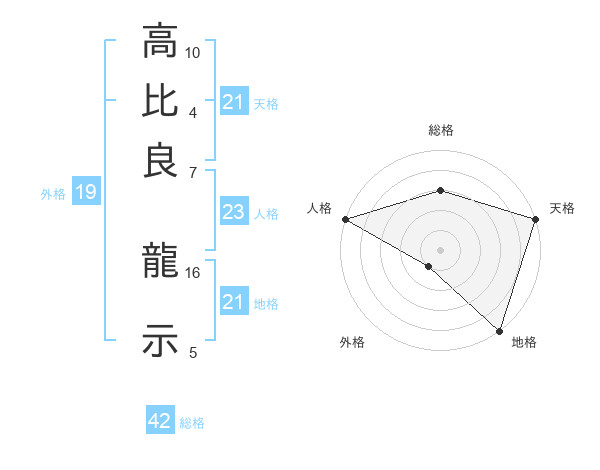 高比良 龍示さんを姓名の画数から五運を鑑定