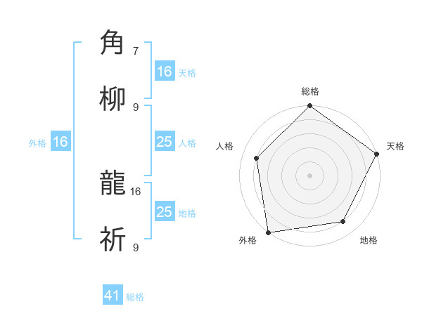 角柳 龍祈さんを姓名の画数から五運を鑑定