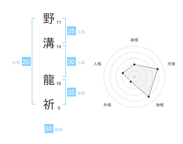 野溝 龍祈さんの天格は25画の4点!